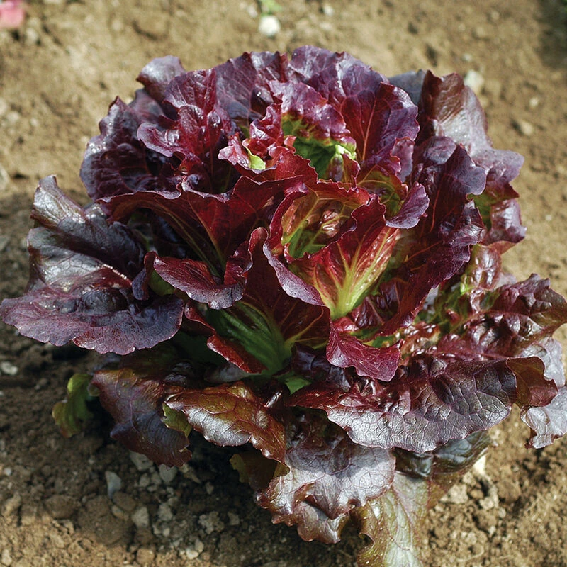 Dark red leaves for mini-head or full-size production. Conventional seed with NOP-compliant pelleting.