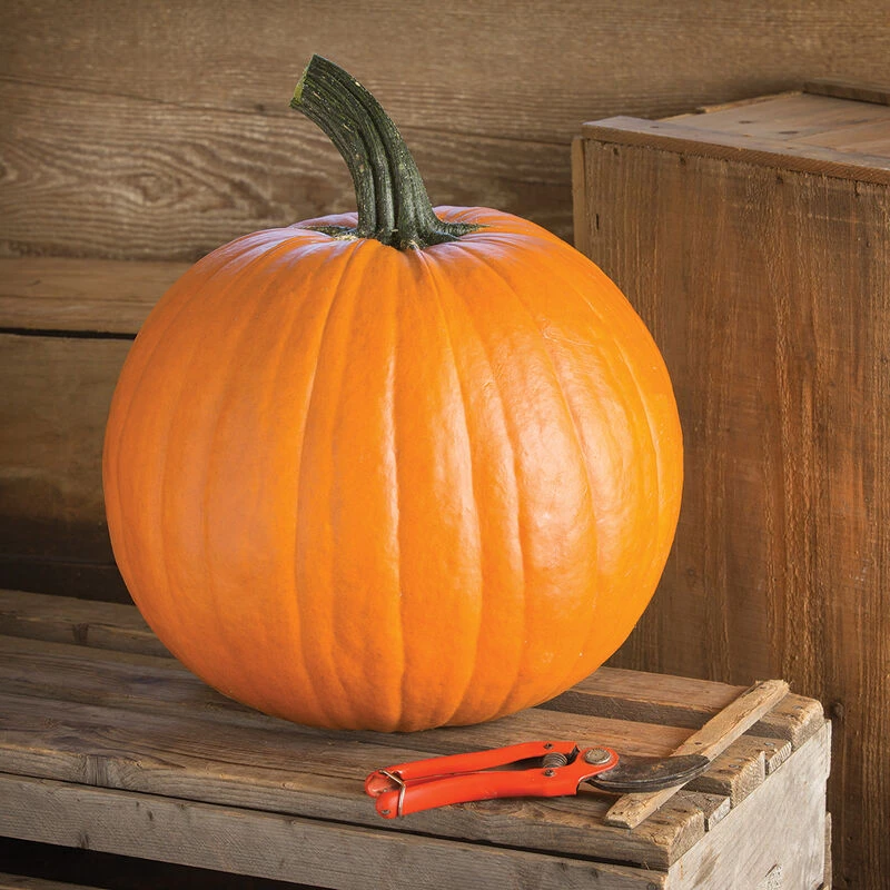 A reliable producer in an essential size class (medium-large, 40–50 bin count). Striking, rich orange, avg. 14–18 lb. fruits are thick-walled and blocky round. Robust handle, strong PMR, and a medium vine. Consistently high marketable yields and very few culls. Ideal for wholesale and roadside stands. Bred by the late Dr. Brent Loy of UNH. Treated seed. Also available untreated.