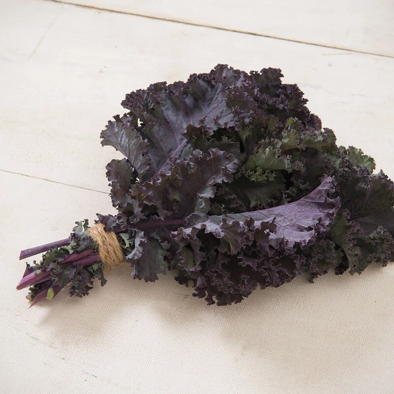 The broad, frilly, purple leaves grow on 2–3′ tall, upright stalks. Red color on a blue-green background, as compared to the red color on a bright green background of Redbor. Scarlet plant height is not quite as uniform as Redbor.