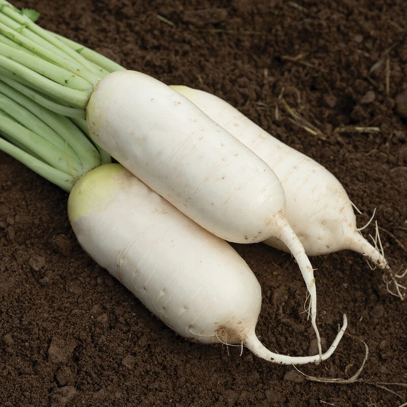 | CULTURE | Daikon and Korean radishes require friable, well-drained soils with a pH range of 5.8–6.8. Work soil deeply, in raised beds if possible, for straight roots and ease of harvest. Sow 10 seeds/ft., thinning to 4–6" apart, rows 18" apart. Note planting seasons in variety descriptions to reduce bolting. |
