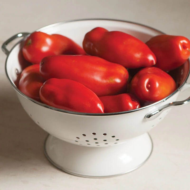 Developed in Italy, Tiren produces meaty, 5–6 oz. fruits with the classic San Marzano shape. Tiren’s interior has very little gel, making it our fastest variety to boil down into sauce. Tiren can be harvested with green shoulders to ripen fully in storage, or can be left on the vine a little longer until it is red-ripe. Indeterminate.